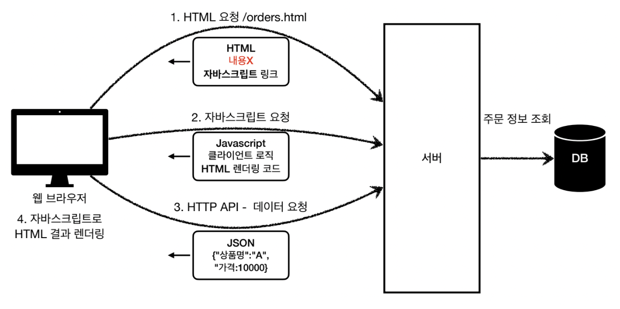 - HTML이 아니라 데이터를 전달