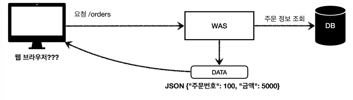 WAS에서 DB를 조회한 후 HTML을 생성하는 것이 아닌 조회한 데이터를 바로 웹 브라우저에게 정해진 형식으로 전달한다.