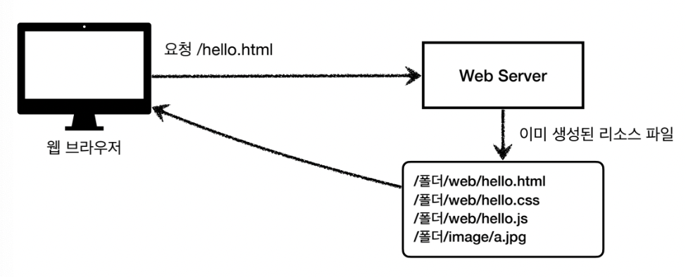 웹 서버에서 이미 생성되어있는 리소스 파일을 웹 브라우저에게 전달하는 방식이다.