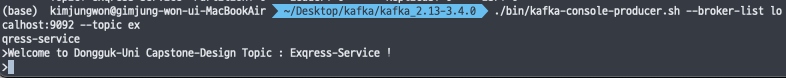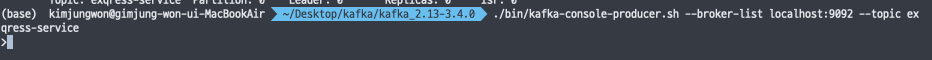위에서 생성한 [exqress-service]라는 topic에 producer로 설정해주는 명령문이다.