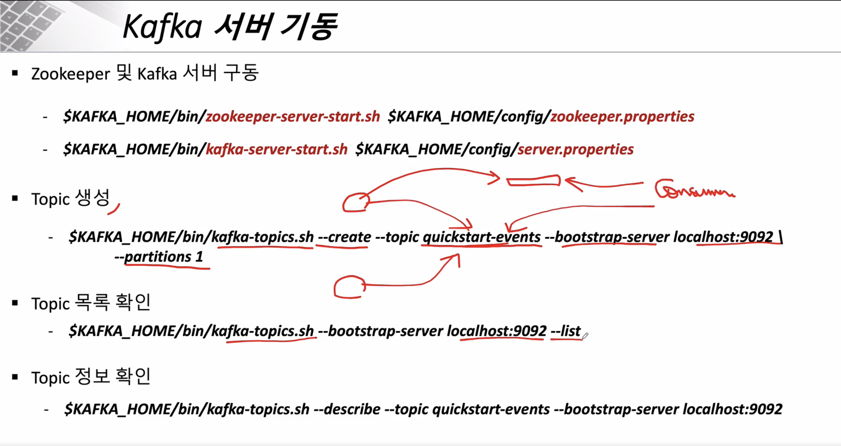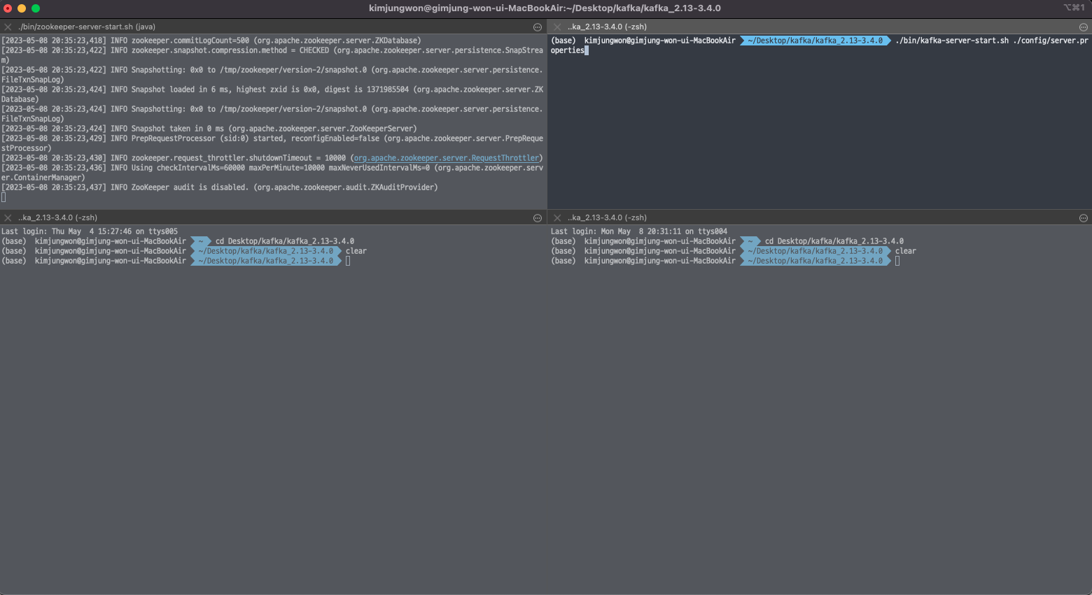 - Kafka 파일이 있는 곳으로 이동하여 아래와 같은 명령어를 통해 실행