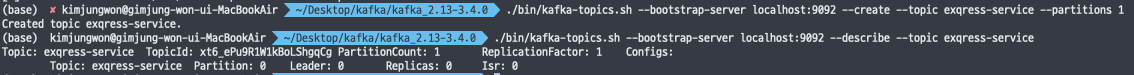 ./bin/kafka-topics.sh --bootstrap-server localhost:9092 --create --topic exqress-service --partitions 1