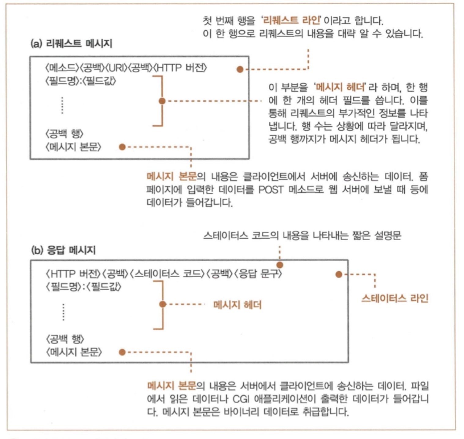 - 응답 메시지의 포맷도 기본적인 기념은 리퀘스트 메시지와 같지만 첫 번째 행이 다르다.