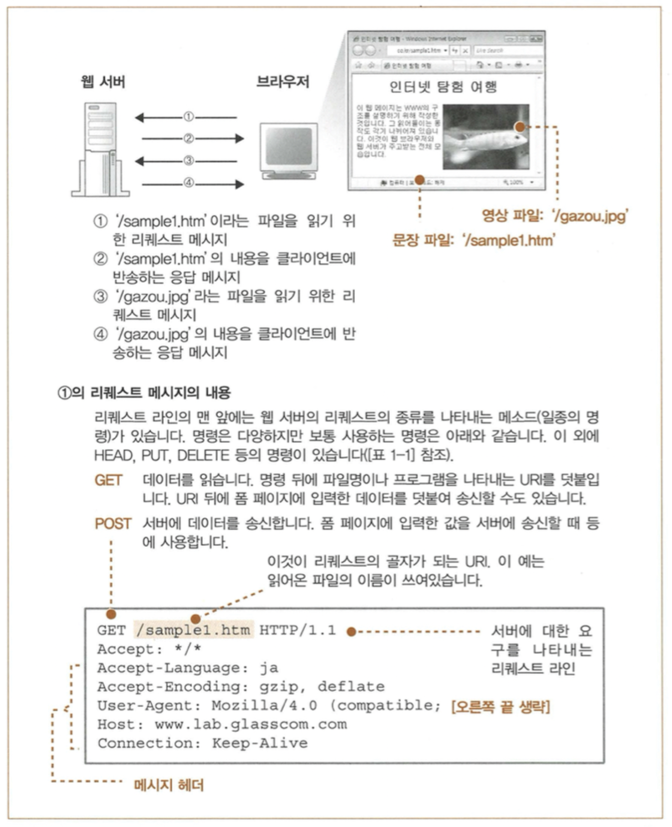 - 브라우저가 처음 하는 일은 웹 서버에 보내는 리퀘스트의 메시지를 작성하기 위해 URL을 해독하는 것이다.