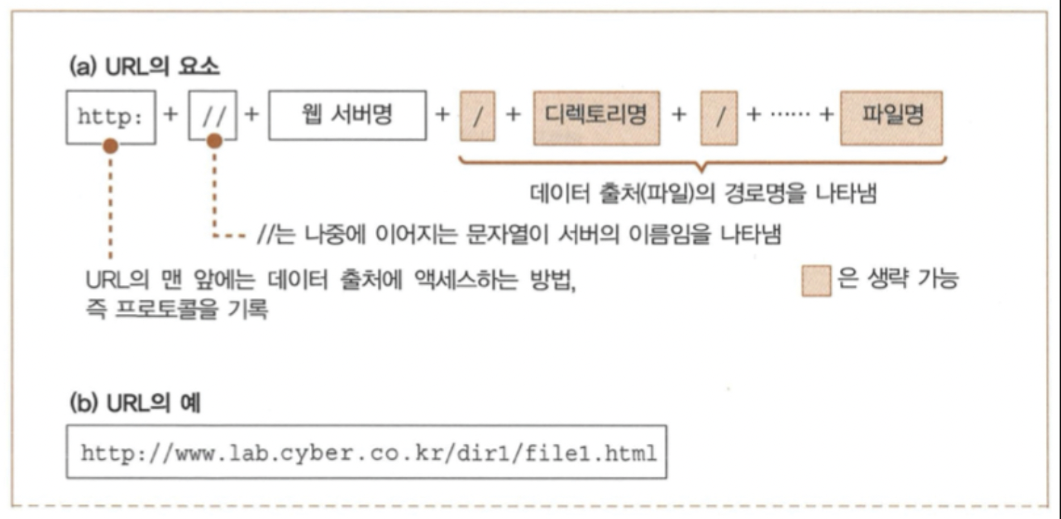 - URL은 http://로 시작하는 것 뿐만 아니라 ftp:, file:, mailto: 등 여러가지가 존재한다.