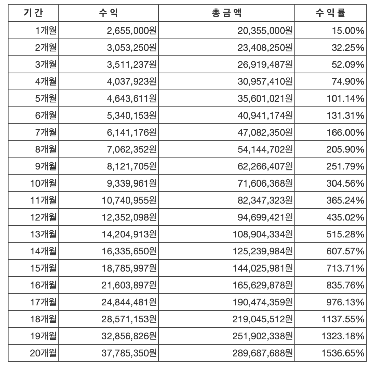 - 최소 15% 이상 목표 수익