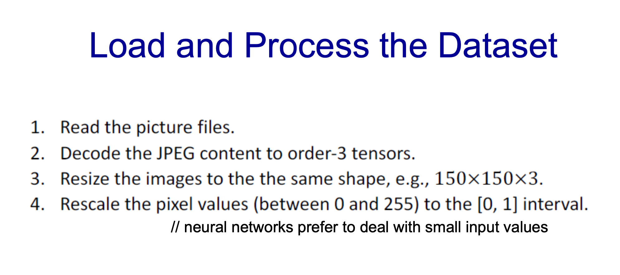 H : 150, W : 150 H : 150, W : 150, cn : 3, cw: 3, S : 1 (150 - 3) / 1 + 1 = 148로 32개의 겹겹 -> 148 x 148 x 32 : 1단계 MaxPooling(2, 2) -> 74 x 74 형태로 계속해서 하다가 마지막 layers.Dense는 1, binary Data(고양이, 개) 이므로 MNIST는 10이었음 2번째 conv할 때는 (3, 3)적용 -> (74 - 3) / 1 + 1 = 72가 됨 64개의 Filter였으므로 (3x3x32+1)x64 이거 꼭 해봐야함 dense layer(512) 계산하면 Parameter 값은 3211776 train data set은 200개 optimizer : 파라미터 찾는 것 loss는 bina..